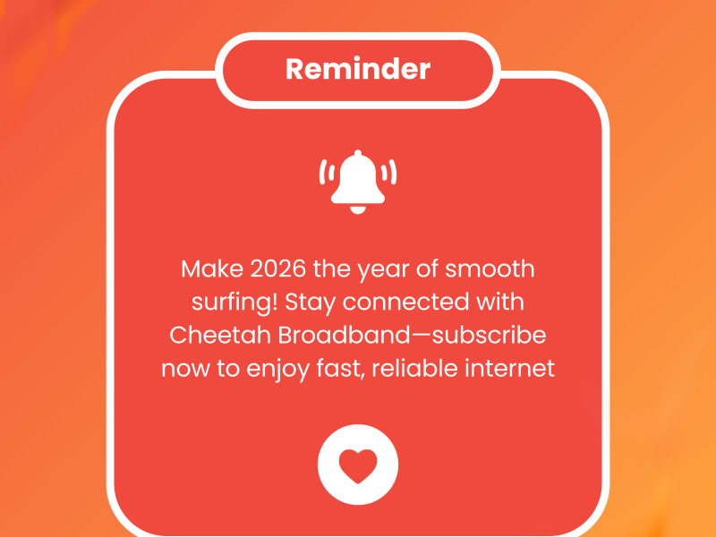 Ready for a seamless 2026? Don’t let slow internet hold you back. Upgrade to Cheetah Broadband...